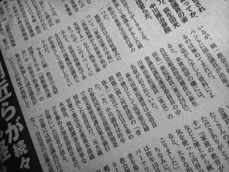 1990年代までは、雑誌や新聞でも統一教会と勝共連合のことは良く取り上げていた。
